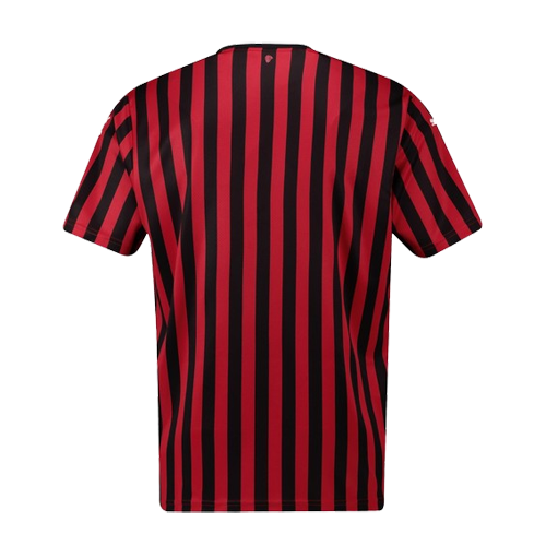 The Milan 2019-2020 home jersey introduces a very classic look with thin black and red stripes,